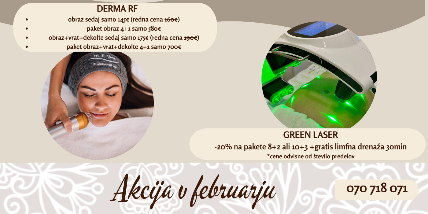 Preoblikujte telo z najnovejšo tehnologijo GREEN WAVE laserja, obrazu pa privoščite intenzivno obnovo in pomladitev z radiofrekvenčnim mikroneedlingom!